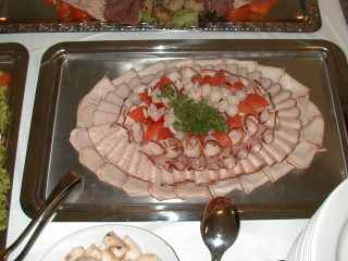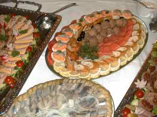 Buffet II. gefüllte Soleier, Bratröllchen, Hausgebeizter Lachs